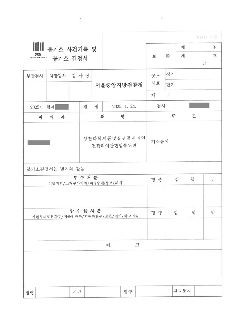 눈썹문신용 염료 화학제품안전법 위반으로 고발된 K씨를 변호하여 기소유예 처분을 이끌어낸 사건